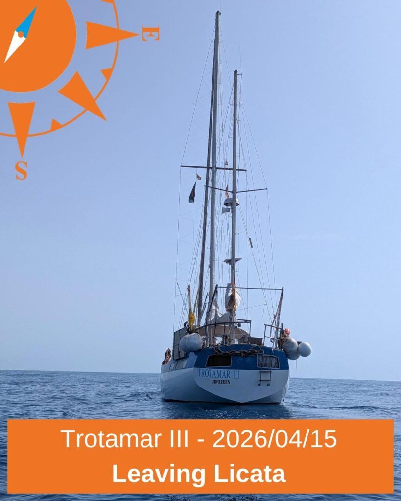Die letzten Vorbereitungen sind beendet, das Wetter passt und heute Morgen konnte die zweite Crew dieses Jahr, in See stechen! Das Ablegemanöver wurde noch einmal genau besprochen, die Ausrüstung ein letztes Mal überprüft, und dann hat die Trotamar III den Hafen von Licata verlassen.