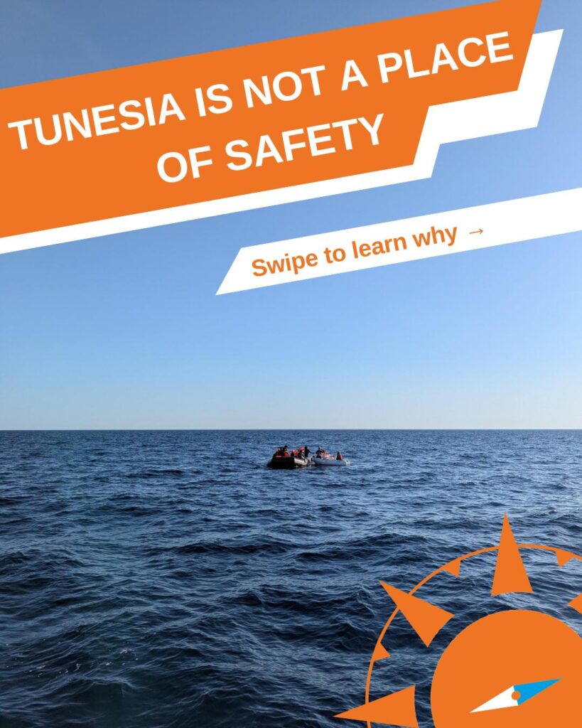 Warum verweigern wir die Kommunikation mit Tunesien in der Koordinierung von Seenotfällen? Tunesien ist kein sicherer Ort für Flüchtende! Seit 2023 befeuert Tunesiens Präsident Hass und Hetze gegen Migrant*innen. Die willkürliche und rechtswidrige Inhaftierung von Flüchtlingen und Migranten ist in Tunesien weit verbreitet und betrifft Schwarze Menschen unverhältnismäßig stark. Diese Inhaftierung findet darüber hinaus unter