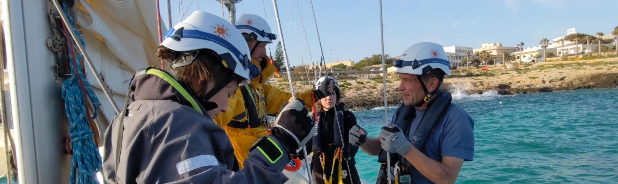 UPDATE 2024/03/10 – TROTAMAR III – Vor Lampedusa haben heute die letzten Trainings unserer Crew stattgefunden, bevor die TROTAMAR III in die SAR-Gewässer aufbrechen wird. Besonders wichtig dabei ist der Umgang mit dem Beiboot in rauem Wasser, mit unserem Dinghy bringen wir Schwimmwesten zu Menschen in Seenot. Deshalb wird dieses Manöver immer wieder geübt. Wir