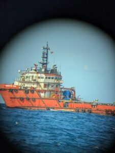 On 6 November, the people fled from their unseaworthy rubber dinghy to the ‘Maridive 208’, a supply ship anchored near the Miskar gas island. The captain called on the Tunisian Maritime Rescue Coordination Centre (MRCC) to take action. They instructed him to contact the TROTAMAR III, which was nearby at the time. Since then, the crew of the sailing boat has been offering to evacuate the 53 people from the Maridive and bring them to safety.