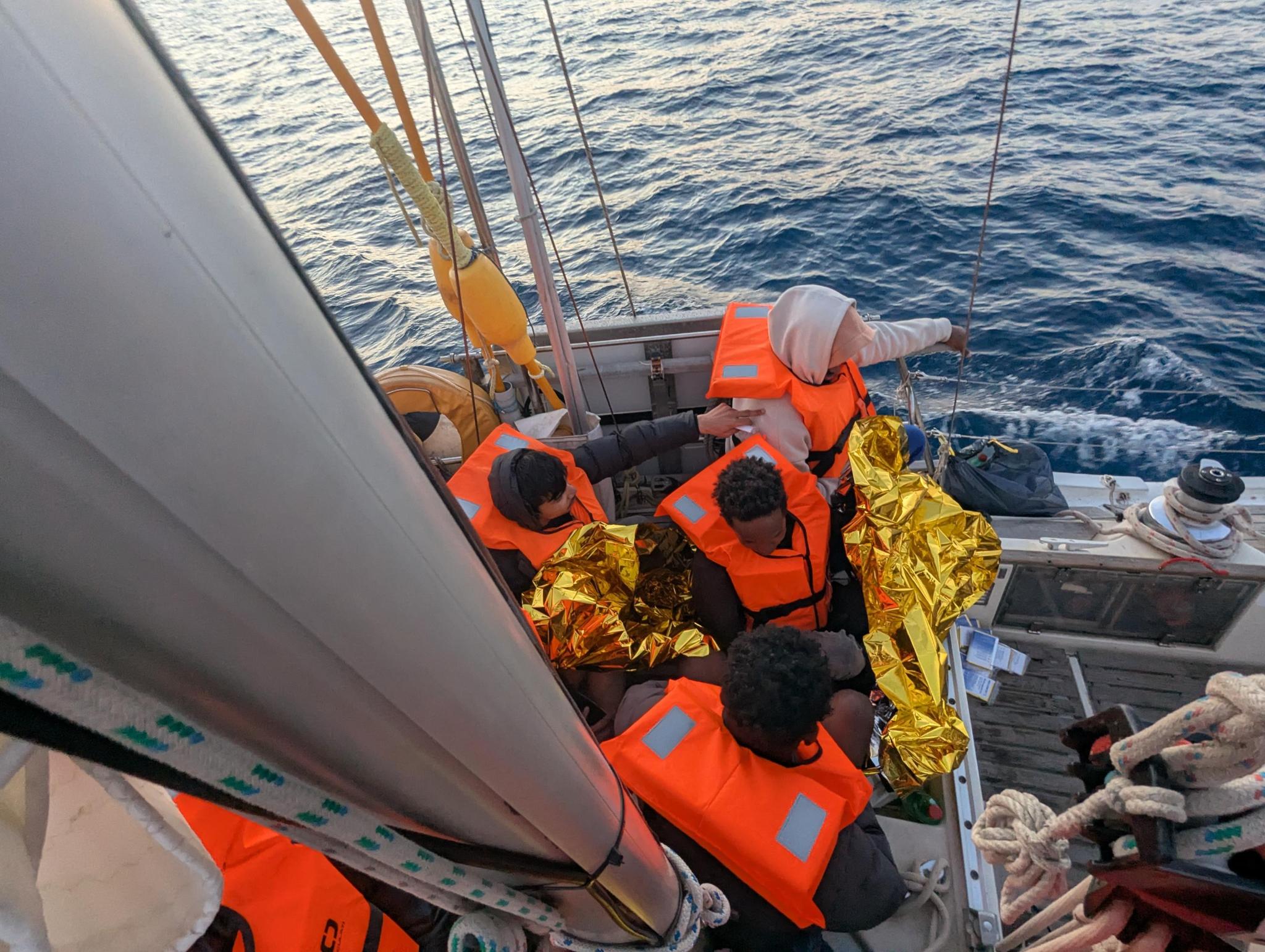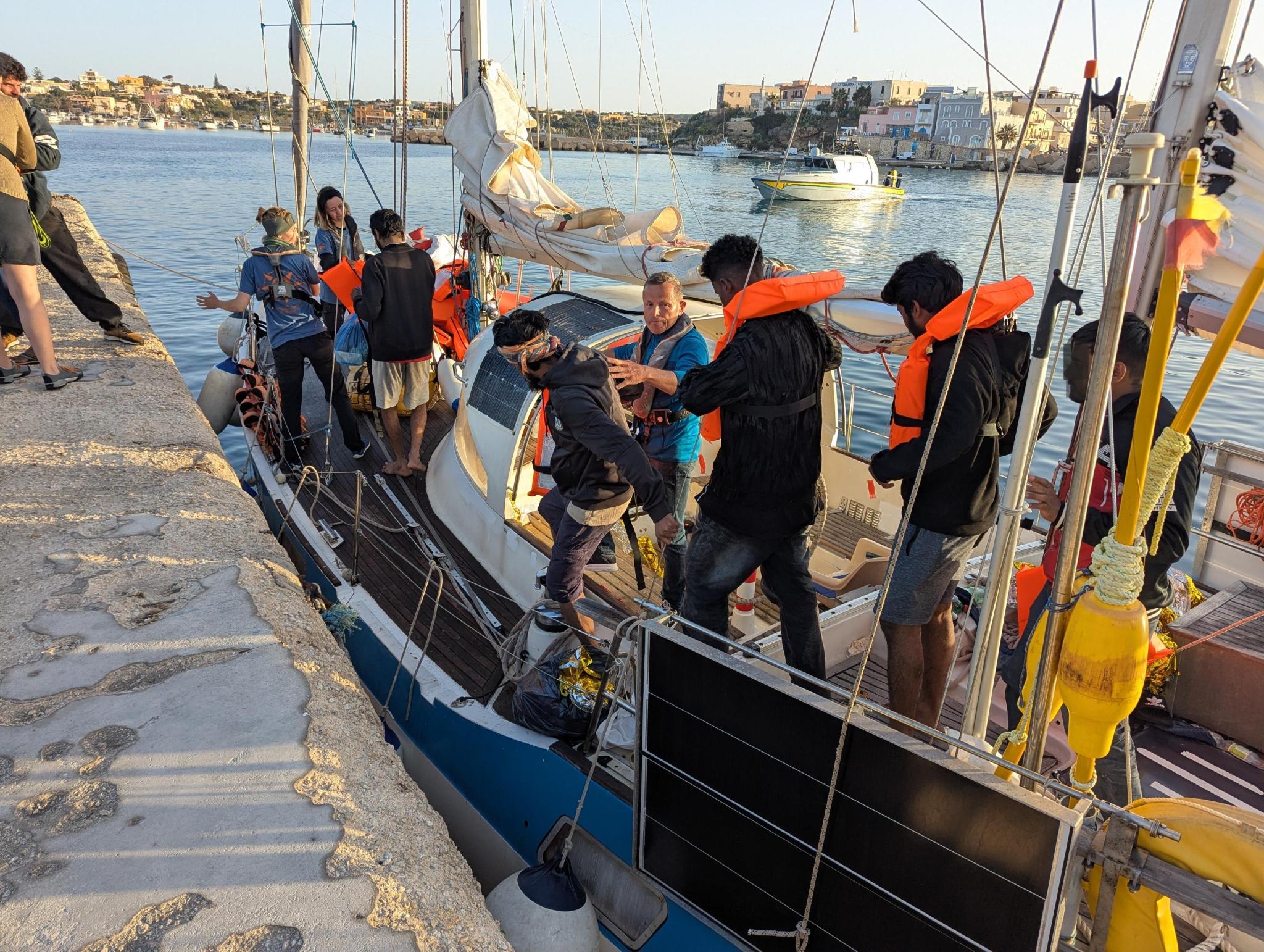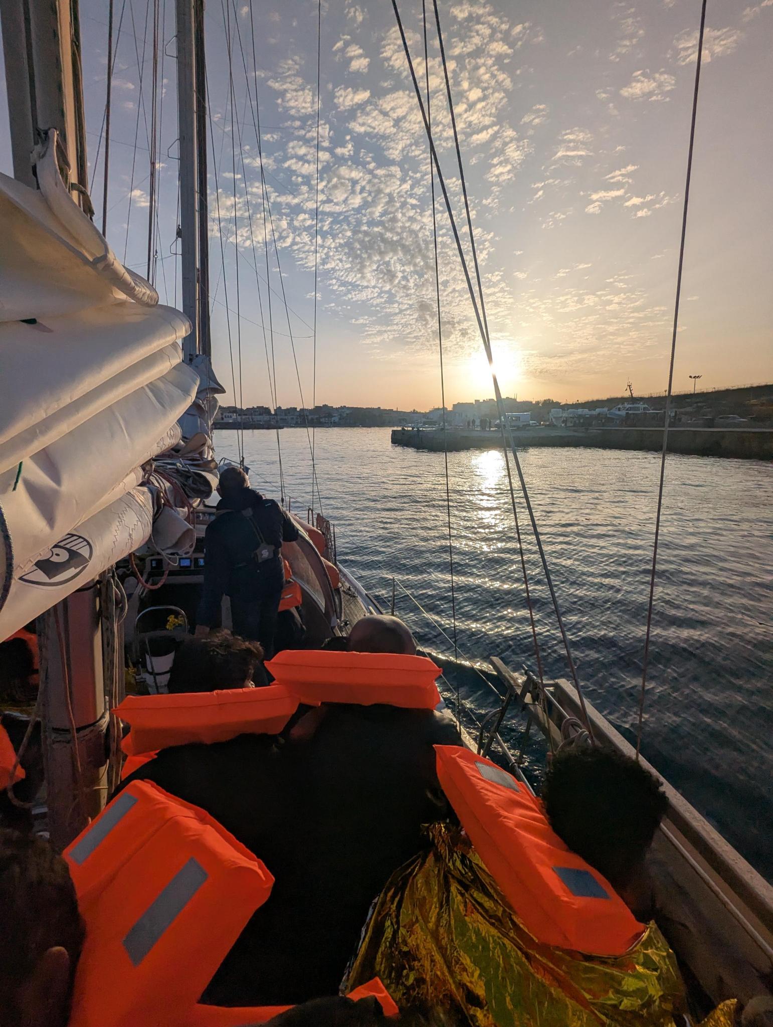 Since 16 April, the crew of the sailing boat had been on the lookout for distress situations. There had been several alerts, but in recent days many people had been intercepted by the so-called Libyan or Tunisian coastguard and illegally returned. The same fate could have befallen the 18 people in distress, but they were spotted by our crew on Tuesday afternoon before the Tunisian navy could reach them. After being issued with life jackets, the people were taken on board shortly before sunset and handed over to the Italian authorities in Lampedusa in the early morning of 22 April. There, a ban on leaving port was issued on 23 April, as the rescue of these people had not been coordinated by the Tunisian authorities.