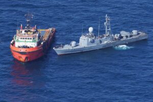 Schon am Vorabend, den 23.08.2025 um 21.15 Uhr wurde die TROTAMAR III massiv in ihrer Bewegungsfreiheit eingeschränkt und abgedrängt, als ein Patrouillenboot der sog. Lib. Küstenwache dicht an Backbord heranfuhr und im Funkverkehr auch mit „Fire" (Schusswaffengebrauch) drohte. In diesem Fall war die Besatzung einem May Day Relay eines Frontex-Flugzeugs gefolgt und wurde mit Gewalt abgehalten, ihre Pflicht zur Seenotrettung zu erfüllen.