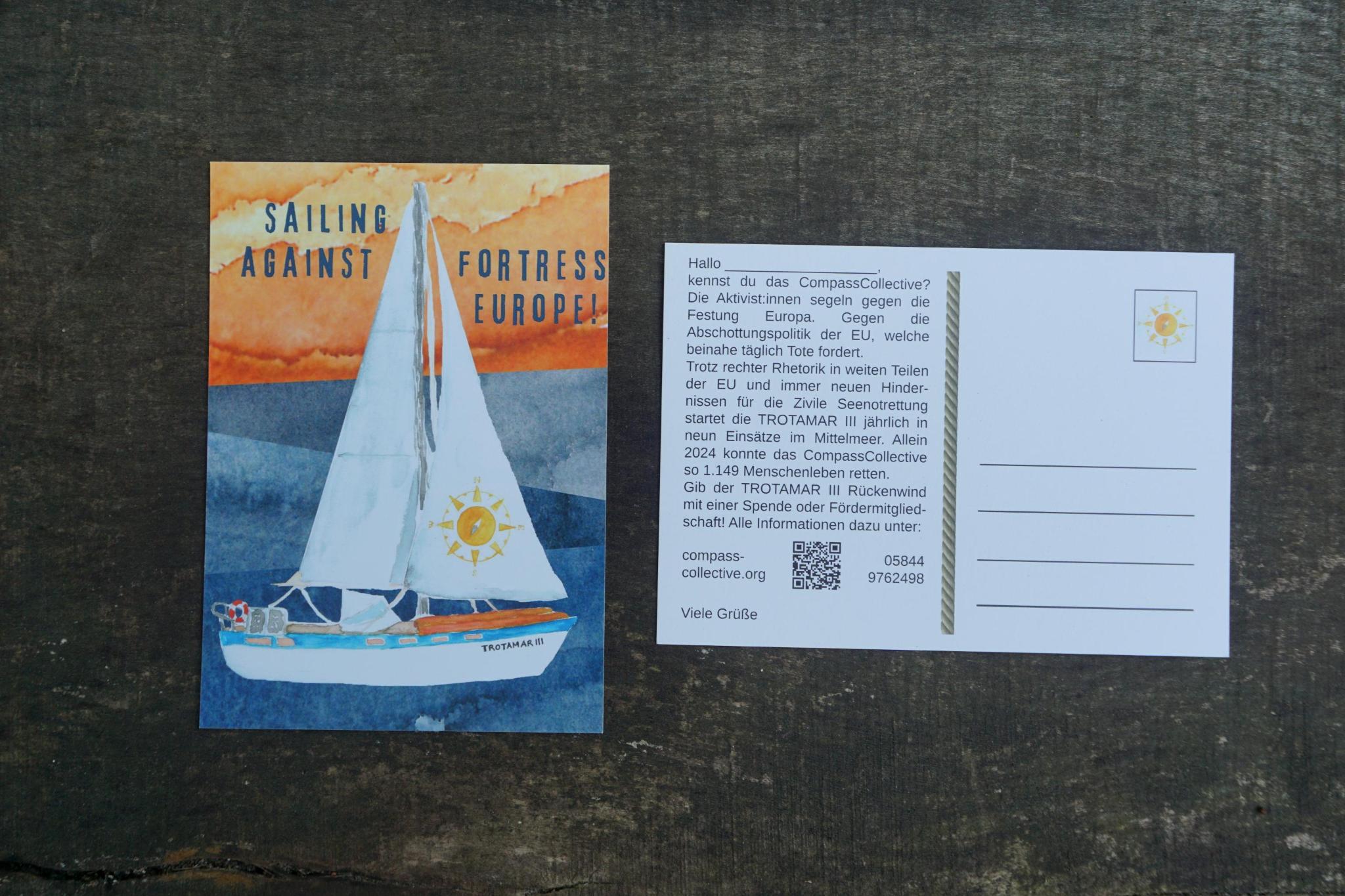 Postkarte: Sailing against Fortress Europe!